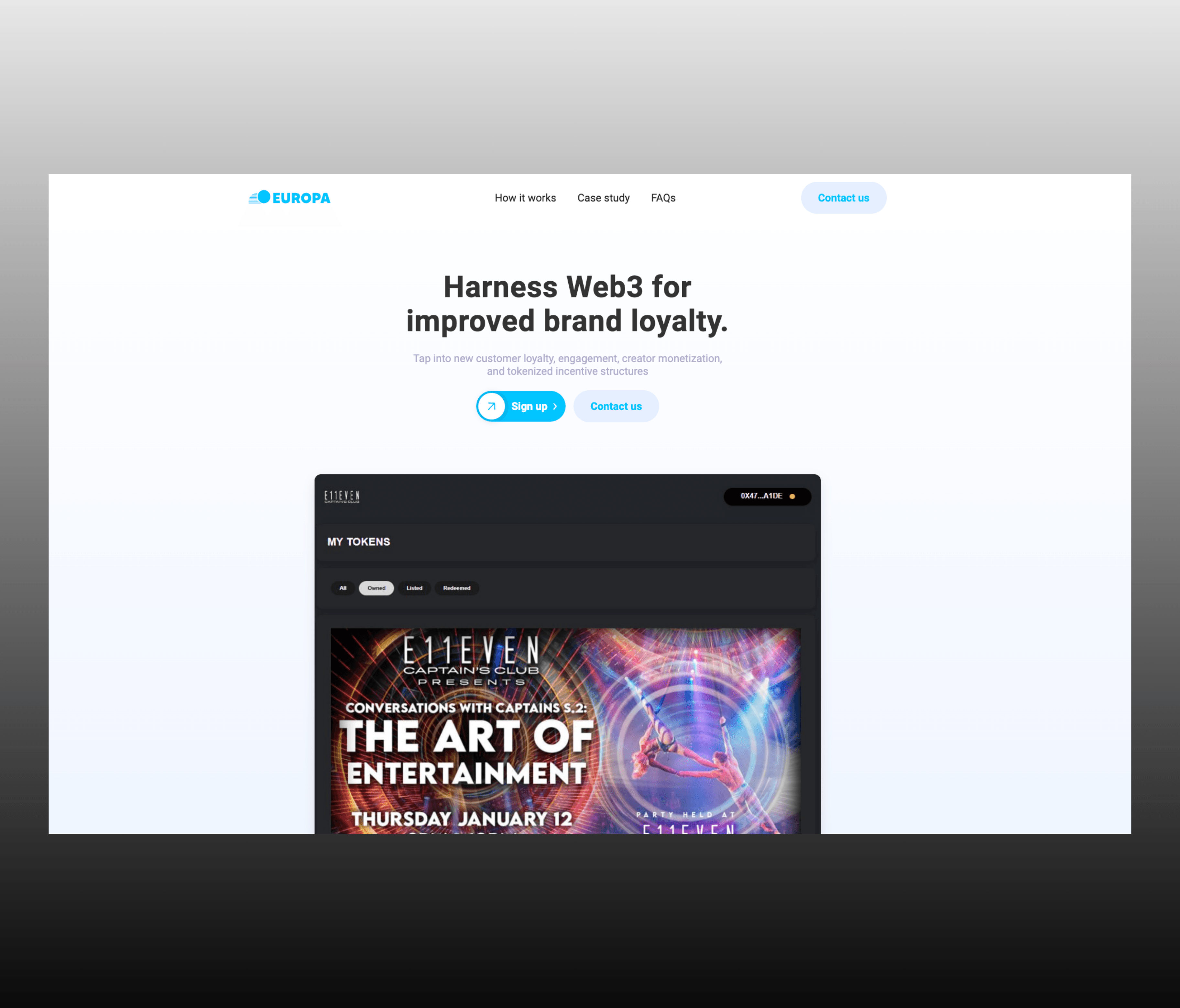 Europa Labs builds infrastructure for Web3-native loyalty and membership. Their engine powers branded token flows, digital-physical redemption, NFT-based access, and seamless social integrations.